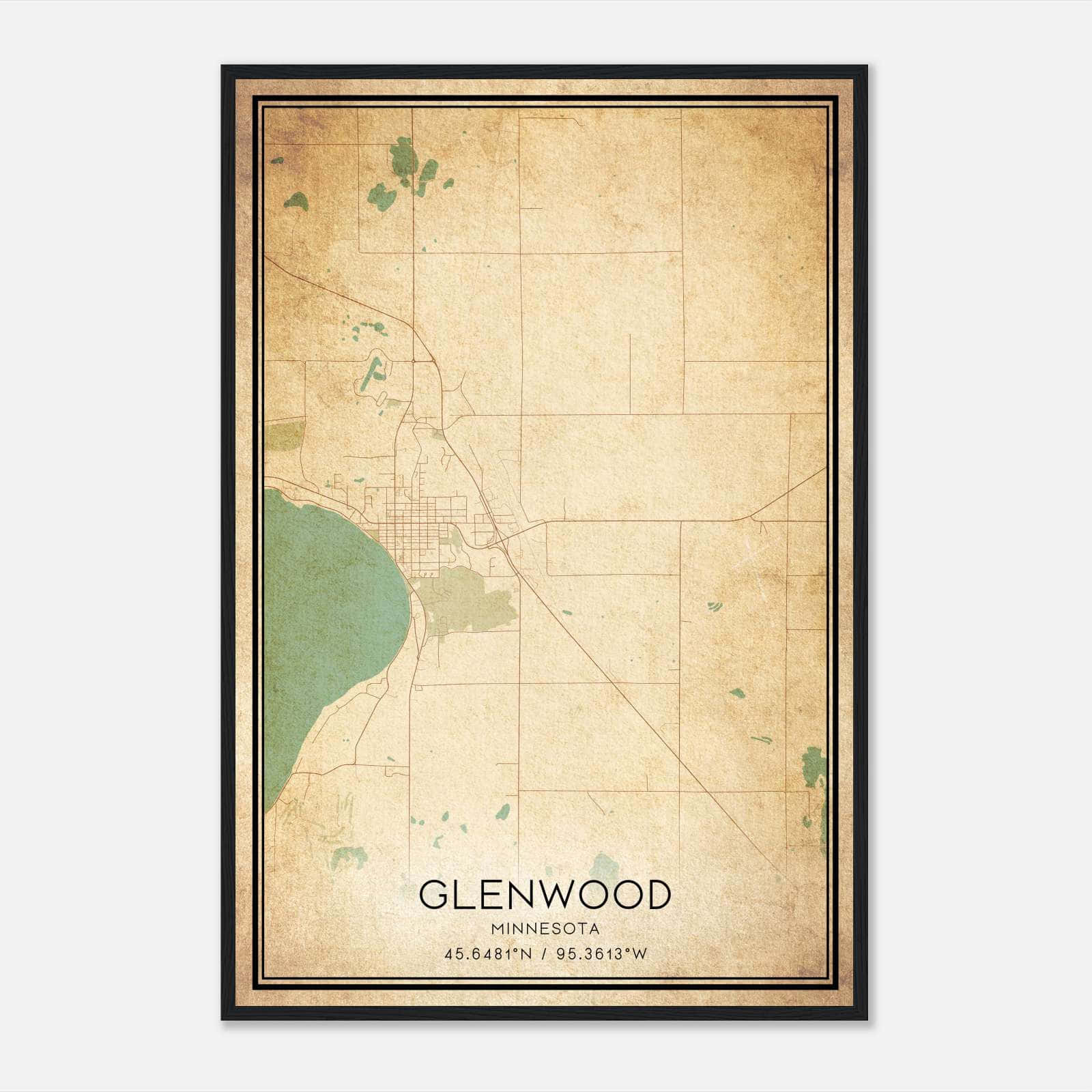 Vintage Glenwood Minnesota Map Poster, Glenwood MN City Road Wall