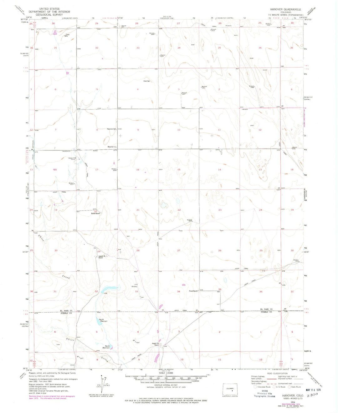 Classic USGS Hanover SE Colorado 7.5’x7.5′ Topo Map โ MyTopo Map Store