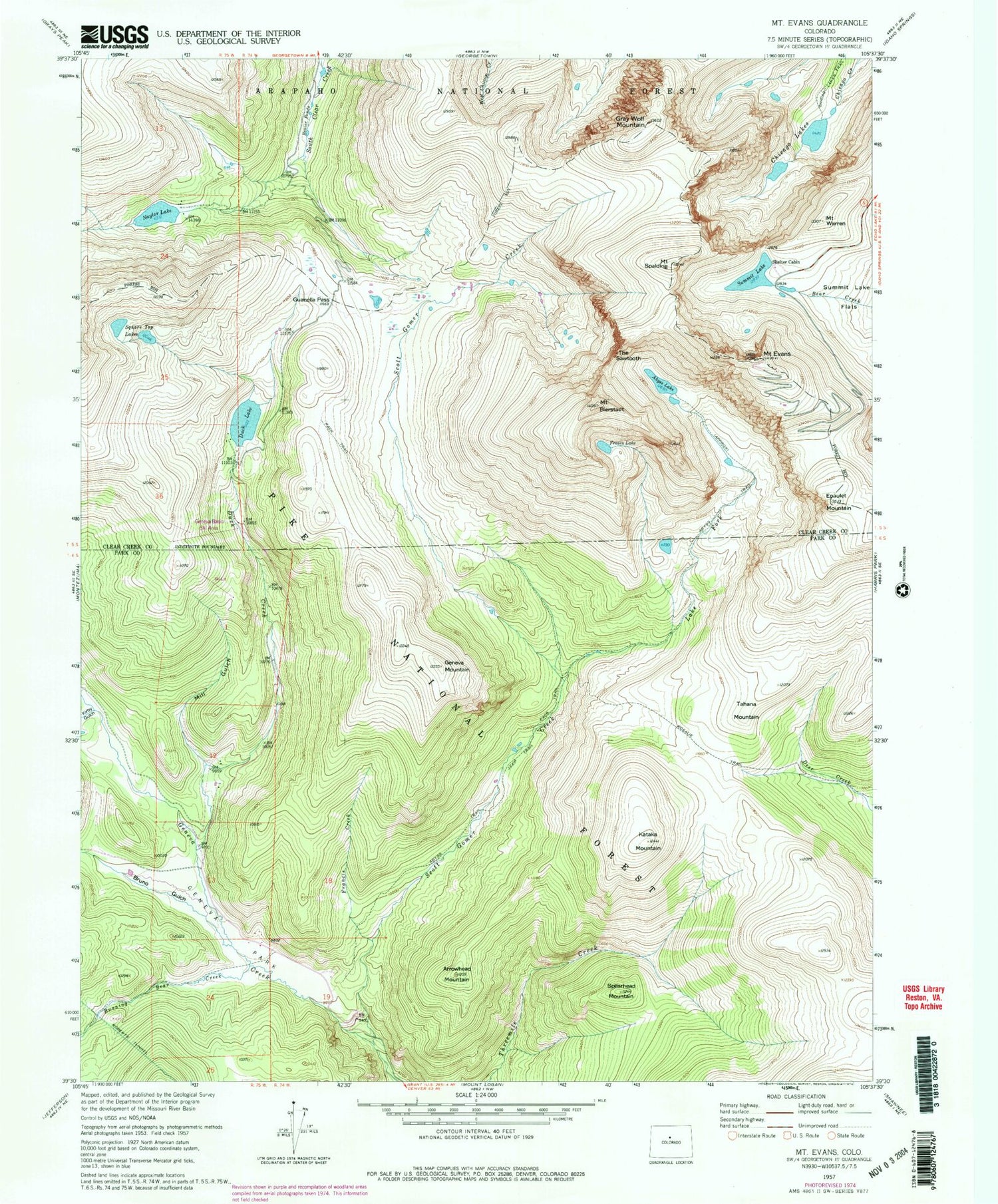 USGS Classic Mount Evans Colorado 7.5’x7.5′ Topo Map โ MyTopo Map