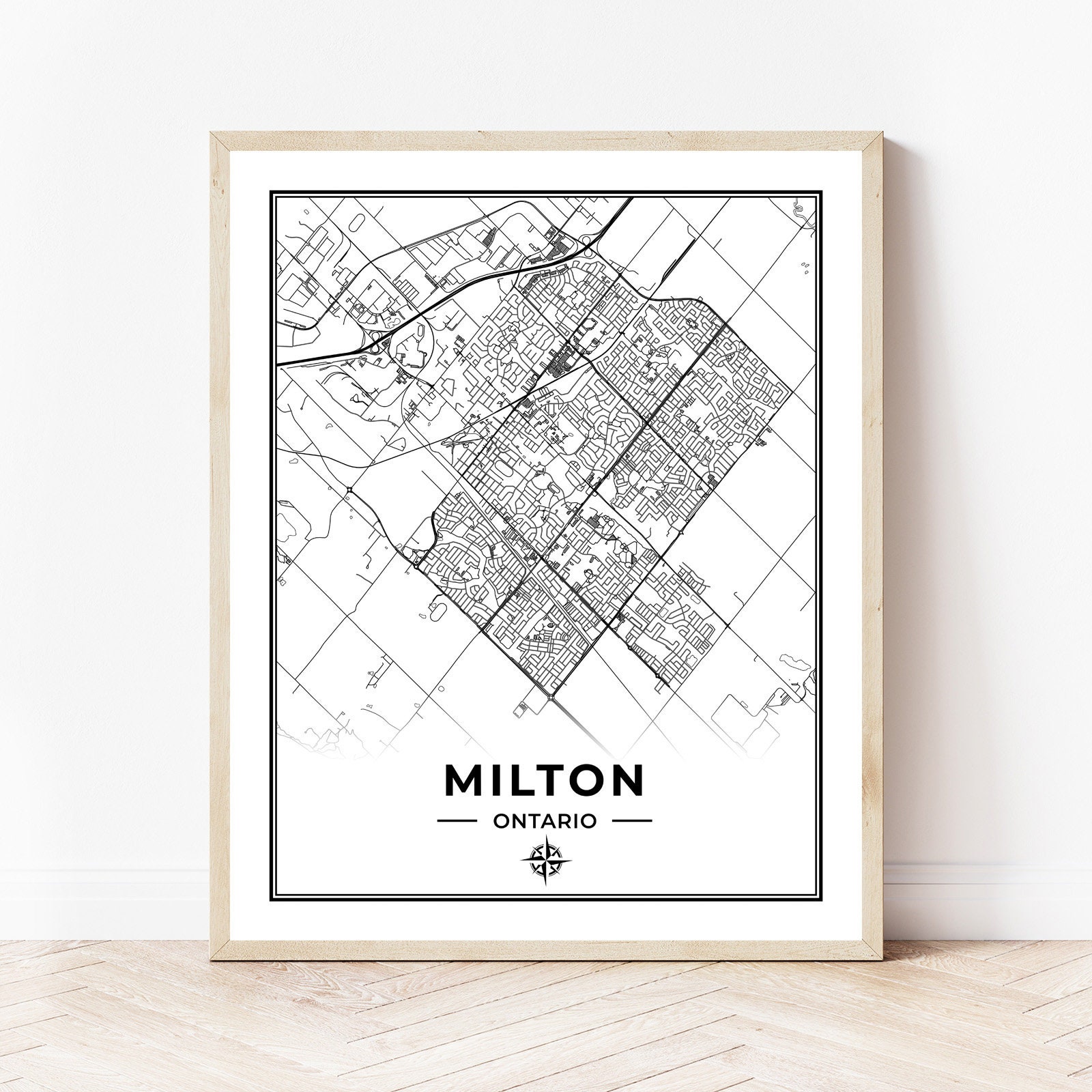 Milton Map Print Map of Milton Ontario Black & White Digital