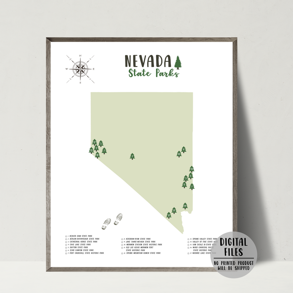 Nevada State Parks Map | Nevada Map Print | Gift For Hiker