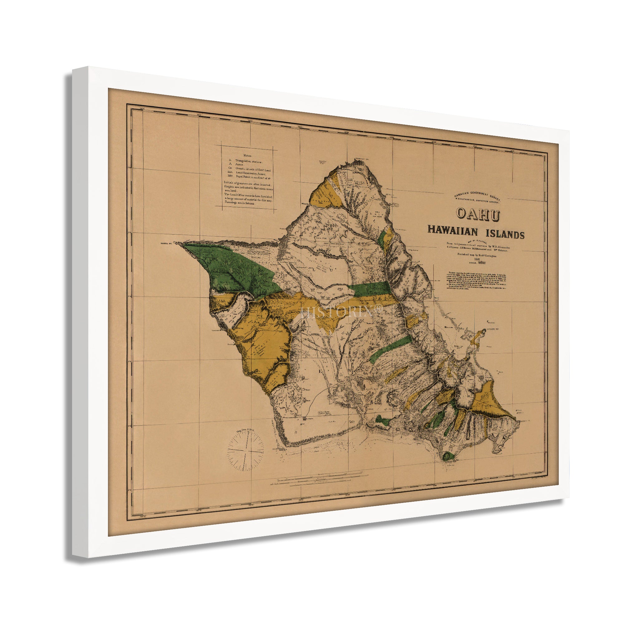 1881 Oahu Hawaiian Islands United States Map Framed Wall Art