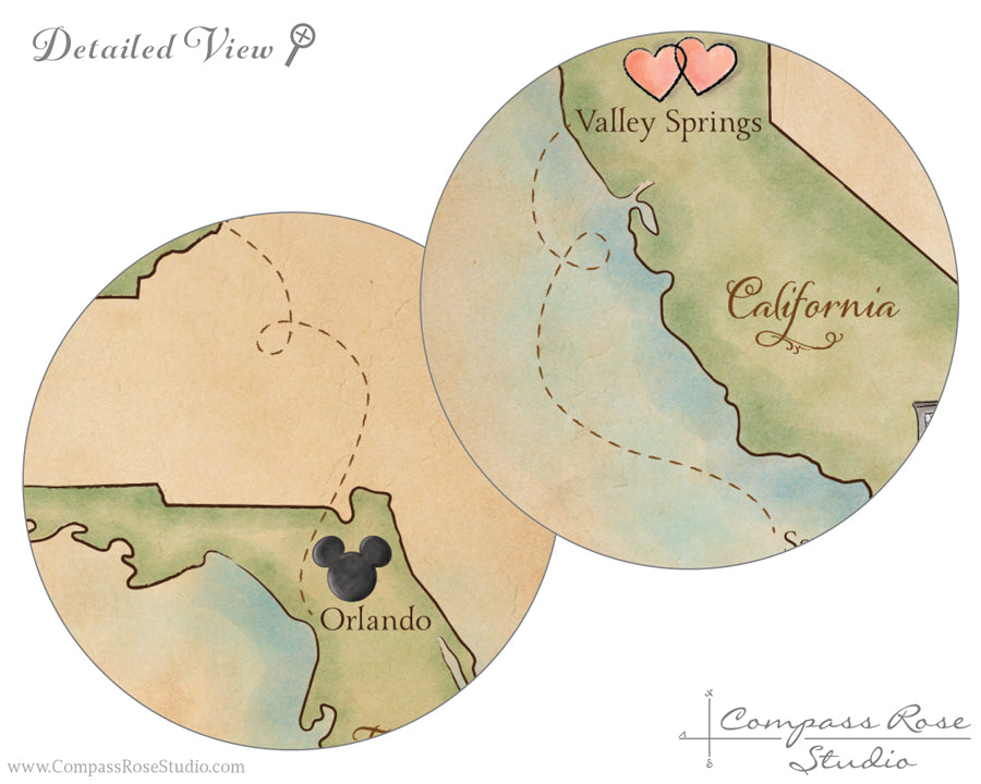 California, Tennessee & Florida Custom State Wedding Map โ Compass