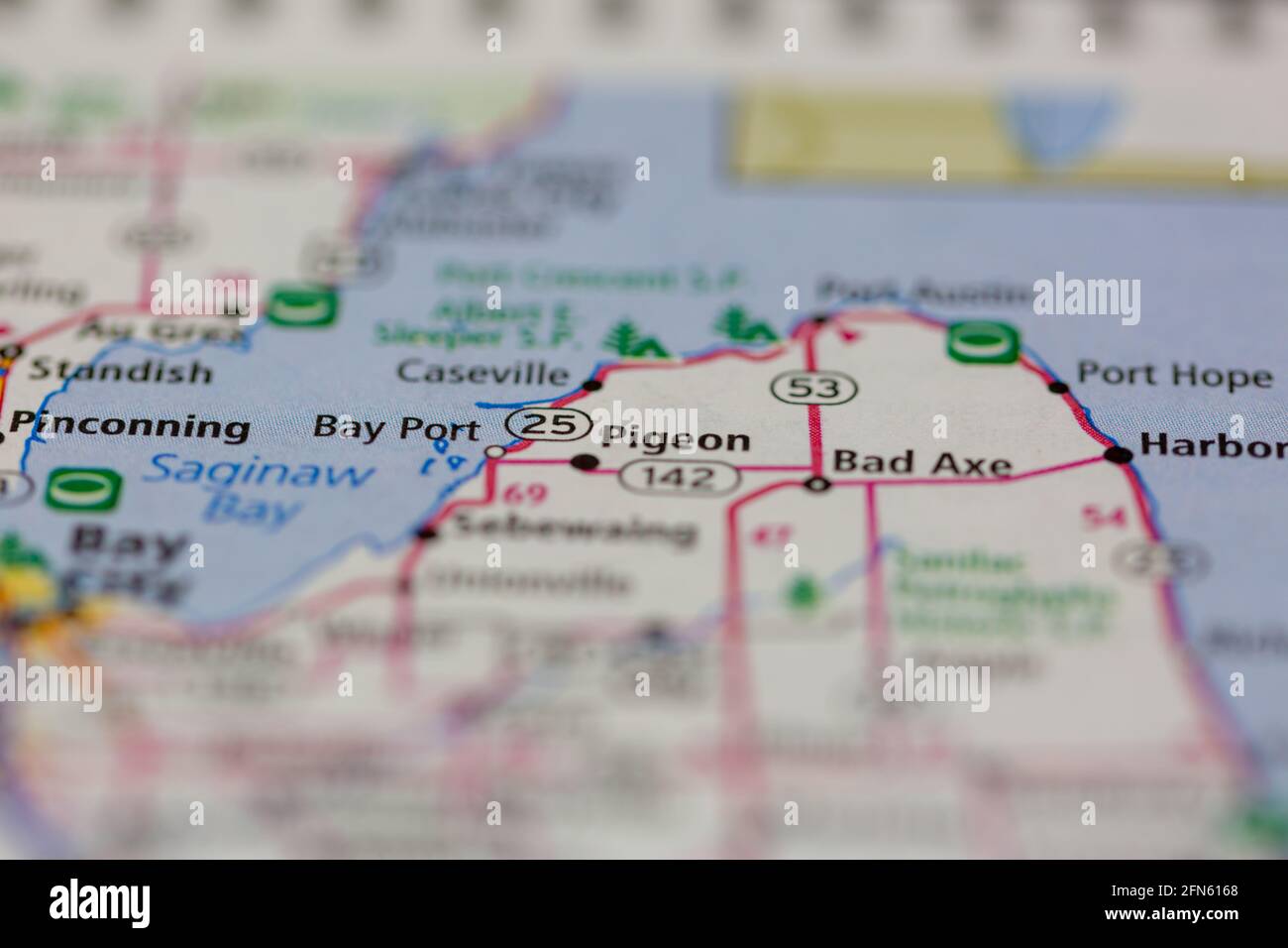 Pigeon Michigan USA shown on a Geography map or road map Stock