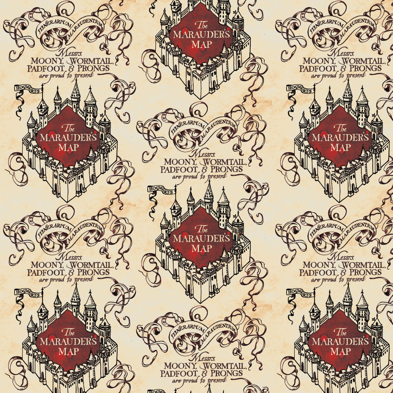 Harry Potter Marauders Map 100% Cotton Print Fabric Cream & Wine