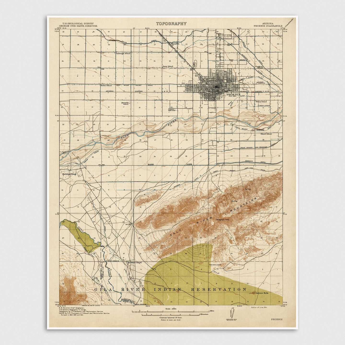 Phoenix, Arizona USGS Topographic Map (1914) – Blue Monocle Maps